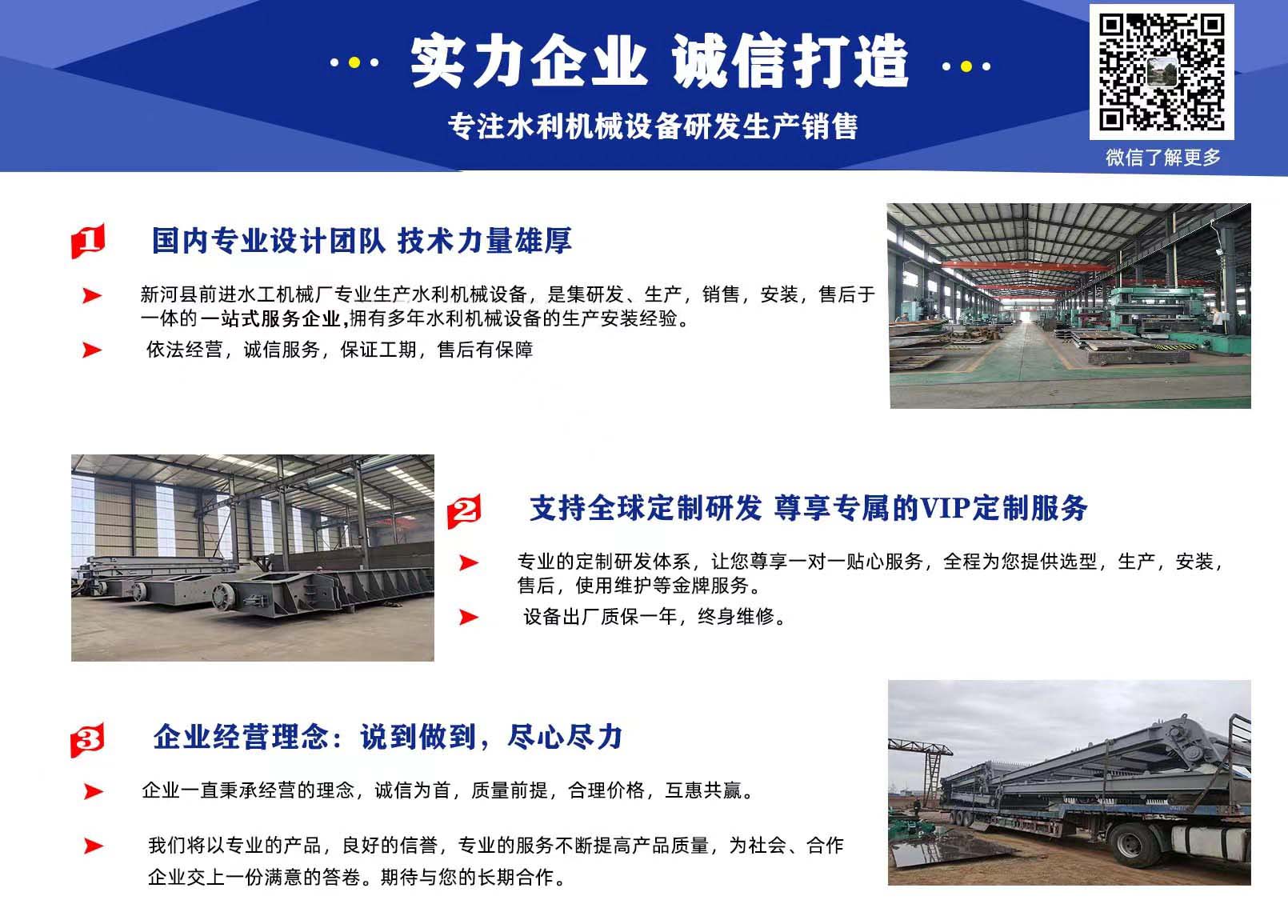前進(jìn)水工優(yōu)勢:具有專業(yè)研發(fā)團(tuán)隊,精湛的制造工藝,嚴(yán)謹(jǐn)?shù)臋z驗技術(shù),完善的售后服務(wù)